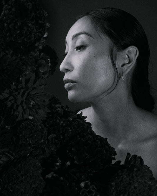 LONG BUD EARRINGS / black diamond + tahitian pearl