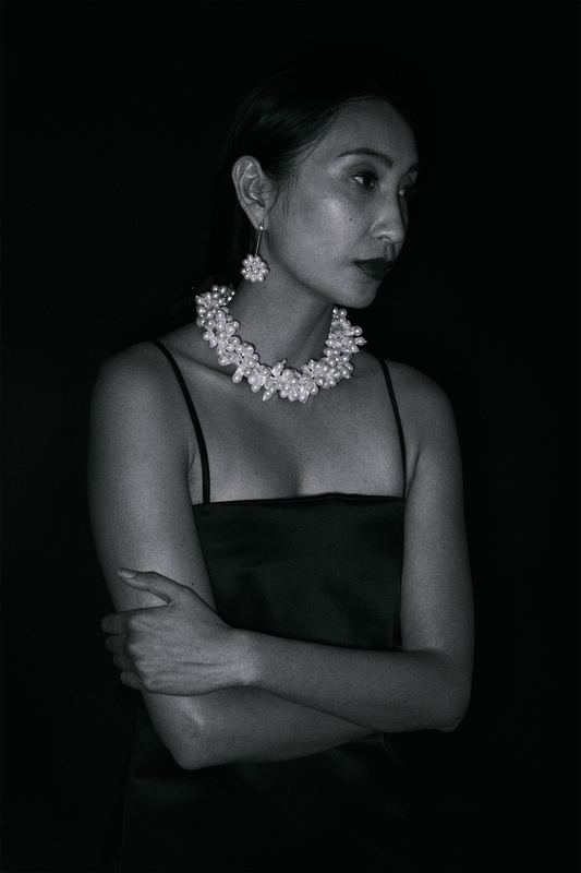 LONG SWARM EARRINGS / white topaz + freshwater pearl