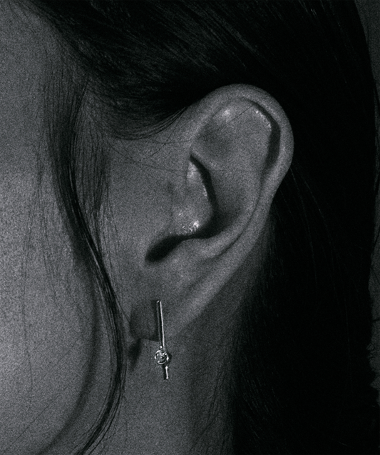 LONG STEM EARRINGS / white topaz + biwa pearl